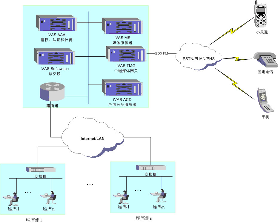 - iVAS Agent:人工座席,可以采用IAD+普通的電話(huà),或者SoftPhone方式接聽(tīng)來(lái)電