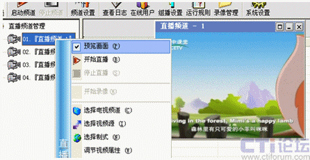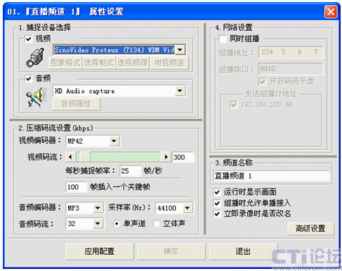 用鼠標右鍵點擊直播頻道管理下的某個頻道號,我這里選擇01:在彈出的右鍵菜單中選擇“直播頻道設置”或者點擊工具欄里的“頻道設置”圖標,出現(xiàn)下面的設置圖: