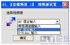 其中支持三種視頻源:從電視調(diào)諧器輸入是對應電視光纖信號輸入,av混合輸入則對應從電視卡的av端子輸入,s-video輸入對應從S-video端子輸入。由于遠教接收機只能輸出av信號,我這里是連接電視卡的av端子接收遠教電視節(jié)目的。因此這里選擇“AV混合輸入”,確定即可。
