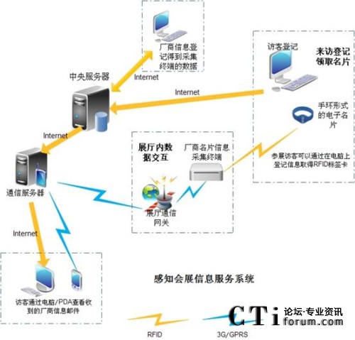 感知會展信息服務(wù)系統(tǒng)(Sensing Exhibition Information Service System-簡稱SEISS系統(tǒng))此系統(tǒng)是物聯(lián)網(wǎng)技術(shù)結(jié)合TTS技術(shù)應(yīng)用于一體的新型會展系統(tǒng)。技術(shù)方案主要利用無線通信技術(shù)、射頻技術(shù)、電子技術(shù)、計算機技術(shù)、信息網(wǎng)絡(luò)技術(shù)、TTS技術(shù)和傳感技術(shù)等高科設(shè)備與軟件組成的系統(tǒng),以實現(xiàn)會展的電子名片化,并向參展商的目標客戶提供更好的服務(wù)。本系統(tǒng)的主要社會經(jīng)濟價值有: