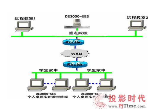 利用DE3000遠(yuǎn)程教育系統(tǒng),可以實現(xiàn)遠(yuǎn)程名師實時授課和多媒體教材傳送,使遠(yuǎn)在千里之外的任何地區(qū)的學(xué)生都能夠得到各地多位名師的言傳身教。