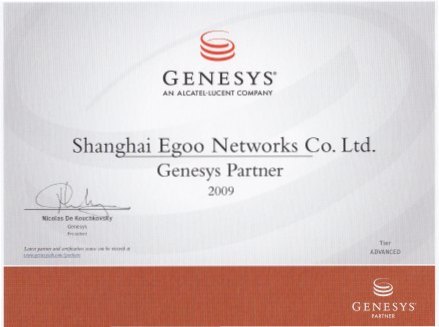 上海易谷與Genesys公司雙方在2009年達(dá)成大中華區(qū)長(zhǎng)期合作伙伴關(guān)系,開展廣泛、深入的合作。上海易谷將憑借其深厚的技術(shù)背景、優(yōu)質(zhì)的服務(wù)能力,積極推動(dòng)世界第一的CTI及SIP新一代呼叫中心基礎(chǔ)平臺(tái)。為配合產(chǎn)品多樣化、專業(yè)服務(wù)的發(fā)展戰(zhàn)略,與