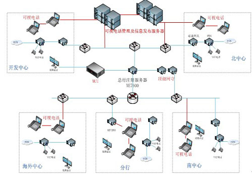 與原有的系統(tǒng)兼容,保持原有的撥號規(guī)則,會議系統(tǒng)等,盡量少的改變原有系統(tǒng),實現(xiàn)總行與四大中心以及各個分行的可視化通信,并實現(xiàn)可視化的通訊錄、會議管理、消息通知等一系列增值業(yè)務(wù)功能。