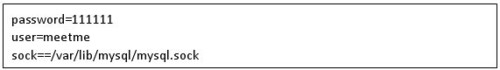 6)現(xiàn)在我們從新連接到MySQL service,我們以剛剛創(chuàng)建的用戶meetme登入:
