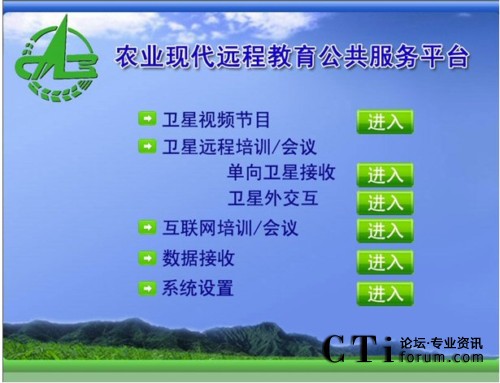 會議所使用的農(nóng)業(yè)現(xiàn)代遠(yuǎn)程教育平臺將先進的多媒體寬帶DVB衛(wèi)星通信系統(tǒng)和全面的網(wǎng)絡(luò)遠(yuǎn)程教育培訓(xùn)/會議系統(tǒng),天(衛(wèi)星網(wǎng))地(互聯(lián)網(wǎng))合一,集成廣播、電視和網(wǎng)絡(luò)的功能,形成了廣覆蓋、大容量、多功能、低成本、快捷高效的遠(yuǎn)程教育培訓(xùn)網(wǎng)絡(luò)、技術(shù)培訓(xùn)資源傳輸通道和網(wǎng)絡(luò)視頻會議系統(tǒng),是面向“三農(nóng)”開展多形式多層次現(xiàn)代遠(yuǎn)程教育培訓(xùn)、科學(xué)普及、技術(shù)推廣和信息傳播的公共服務(wù)平臺。該平臺包括:單向廣播式衛(wèi)星直播系統(tǒng)、雙向衛(wèi)星交互式培訓(xùn)/會議系統(tǒng)、衛(wèi)星外交互培訓(xùn)/會議系統(tǒng)(衛(wèi)星接收,互聯(lián)網(wǎng)回傳)和地面互聯(lián)網(wǎng)雙向交互培訓(xùn)/會議系統(tǒng),適用于純衛(wèi)星網(wǎng)絡(luò)和衛(wèi)星網(wǎng)、互聯(lián)網(wǎng)混合接入等各種網(wǎng)絡(luò)環(huán)境。