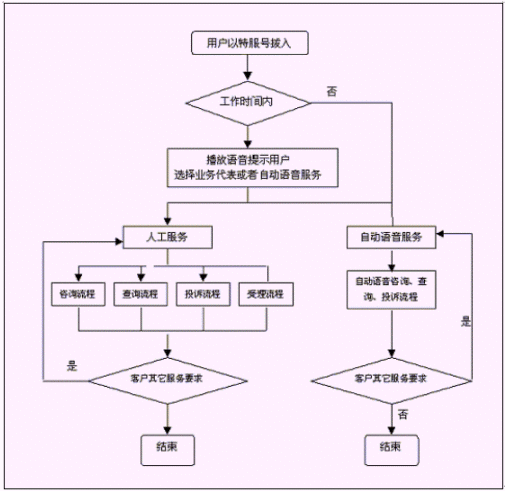 客戶也可以選擇自動(dòng)語音服務(wù)方式,根據(jù)系統(tǒng)的語音提示輸入按鍵,選擇類別,將自己所需要的服務(wù)要求以及自己的聯(lián)系方式信息以留言錄音的方式保存在系統(tǒng)中。系統(tǒng)同時(shí)還支持自動(dòng)傳真方式,客戶可以通過傳真機(jī)進(jìn)入本系統(tǒng),通過按鍵選擇傳真方式,將所需要的服務(wù)要求等的文本內(nèi)容傳真給系統(tǒng),系統(tǒng)自動(dòng)接受并存入數(shù)據(jù)庫。