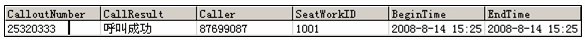可以通過預(yù)測(cè)撥號(hào)識(shí)別各類呼叫結(jié)果,如:忙音、空號(hào)、或無人接聽等,只將有效的通話轉(zhuǎn)接至業(yè)務(wù)人員,同時(shí)將呼叫結(jié)果寫入數(shù)據(jù)庫UT_IMCALL表(如下圖), 備下次呼叫參考, 同時(shí)記錄了工號(hào)及呼出主叫, 當(dāng)該客戶(25320333)呼入時(shí), CTI將自動(dòng)導(dǎo)航該客戶(被叫號(hào)碼)到對(duì)應(yīng)的業(yè)務(wù)員工號(hào)(1001)和主叫號(hào)碼(87699087), 保證客戶(25320333)和業(yè)務(wù)員(1001)一對(duì)一服務(wù)。
