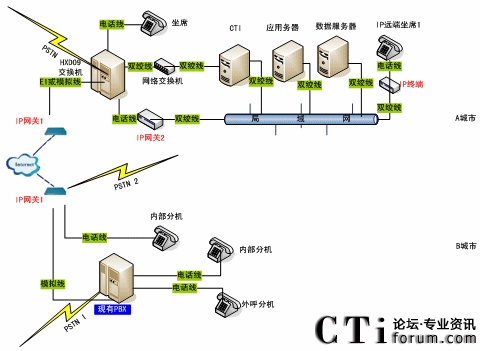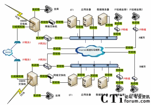 單一的呼叫中心往往是CTI+本地坐席的簡單服務(wù)模式,而在實際應(yīng)用中,由于地域分布的限制,單純的本地坐席無法滿足實際需要,需要提供遠端坐席來實現(xiàn)地域之間的協(xié)作
