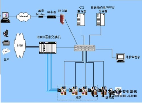 坐席:座席話機采用數(shù)字話機,帶有耳機,并配有錄音端口;座席電腦采用PC微機運行坐席軟件和人工坐席業(yè)務(wù)系統(tǒng)。