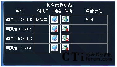 可以將本調(diào)度席暫時(shí)置為“忙”的狀態(tài),此時(shí)電話將不再分配入組,直至再點(diǎn)擊“置閑”按鈕,恢復(fù)正常狀態(tài)。