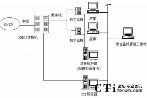 本系統(tǒng)物理結(jié)構(gòu)HXD09交換機(jī)、CTI服務(wù)器、IVR(交互式語音應(yīng)答)/IFR(交互式傳真應(yīng)答)服務(wù)器、統(tǒng)計(jì)維護(hù)管理工作站、數(shù)據(jù)庫/應(yīng)用服務(wù)器、錄音工作站、網(wǎng)絡(luò)系統(tǒng)等構(gòu)成。