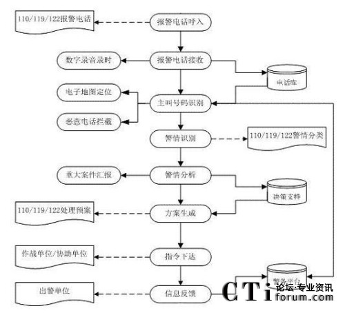該系統(tǒng)主要分為電信子系統(tǒng)(完成聯(lián)動(dòng)中心與各電信公司之間話音的傳輸、交換和分配,以及主叫號(hào)碼和主叫地址的自動(dòng)查詢和傳輸?shù)龋⒔泳行淖酉到y(tǒng)(統(tǒng)一接聽和處理市民的報(bào)警、求助電話)、指揮調(diào)度子系統(tǒng)(或稱為處警中心,通過直觀的地理信息系統(tǒng)和數(shù)據(jù)庫,可以對(duì)所有的資源和警力分布了如指掌。通過一體化的無線數(shù)據(jù)傳輸和無線調(diào)度臺(tái)進(jìn)行方便的統(tǒng)一管理,指揮和調(diào)度)、信息網(wǎng)絡(luò)子系統(tǒng)(聯(lián)動(dòng)中心的骨干網(wǎng)絡(luò),把各種數(shù)據(jù)數(shù)庫、接處警席位、移動(dòng)的警用車載計(jì)算機(jī)等互聯(lián)在一起,形成一個(gè)強(qiáng)大的信息網(wǎng)絡(luò))、無線指揮調(diào)度通信子系統(tǒng)、大屏幕顯示子系統(tǒng)、地理信息子系統(tǒng)、GPS/GIS子系統(tǒng)。