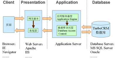 為了滿足移動辦公和分布式管理的需求,CRM系統(tǒng)將更多采用基于Browser-Server架構(gòu)的多層結(jié)構(gòu)。B/S結(jié)構(gòu)的特點是在客戶端使用標(biāo)準(zhǔn)的Web頁面瀏覽器(如Internet Explorer等),不需安裝特殊的應(yīng)用程序,減少了升級和維護(hù)的難度;所有的業(yè)務(wù)數(shù)據(jù)都保存在Server端,確保了數(shù)據(jù)的安全;在通訊方面,由于使用標(biāo)準(zhǔn)的HTTP協(xié)議,使得系統(tǒng)可以輕松的實現(xiàn)移動辦公和分布式管理。另外為了系統(tǒng)功能的可擴(kuò)展性,應(yīng)該采用將數(shù)據(jù)庫、應(yīng)用層及表現(xiàn)層分離的多層結(jié)構(gòu)。獨立的數(shù)據(jù)庫層便于支持多種數(shù)據(jù)庫系統(tǒng),將實現(xiàn)企業(yè)邏輯的應(yīng)用層獨立使業(yè)務(wù)邏輯的更新和擴(kuò)展更為方便,而當(dāng)需要支持手機、PDA等新的客戶端設(shè)備時只要對表現(xiàn)層進(jìn)行擴(kuò)充就可以實現(xiàn)。同時,這種多層結(jié)構(gòu)也可以采用負(fù)載均衡與集群等技術(shù)實現(xiàn)系統(tǒng)的高可用性和性能的平滑擴(kuò)展。