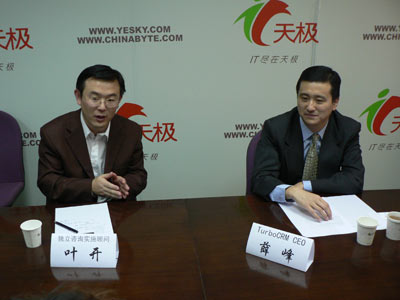 主持人:剖析行業(yè)發(fā)展趨勢(shì),體察企業(yè)e化需求,各位網(wǎng)友下午好,感謝大家關(guān)注本期的e領(lǐng)袖對(duì)話。自2002年開(kāi)始,CRM在中國(guó)取得了快速的發(fā)展,但在人們欣慰的同時(shí)還有一個(gè)現(xiàn)實(shí)讓CRM的概念可能人盡皆知,但CRM的理念卻遠(yuǎn)沒(méi)有深入人心。另外,最近一頓時(shí)間,在領(lǐng)域內(nèi)舉足輕重人物的言行以及一些知名CRM企業(yè)的變數(shù),讓人們對(duì)CRM的未來(lái)有了各種各樣的猜測(cè)和顧慮。那么CRM到底會(huì)有一個(gè)什么樣的未來(lái),CRM為會(huì)帶給中國(guó)的企業(yè)用戶一個(gè)什么樣的未來(lái),今天我們對(duì)話請(qǐng)到的是在CRM領(lǐng)域相當(dāng)資深的兩位嘉賓,看看他們會(huì)給我們一個(gè)什么樣的答案。今天這個(gè)話題引起了網(wǎng)友濃厚的興趣,在進(jìn)來(lái)之前很多網(wǎng)友已經(jīng)提出了問(wèn)題,今天會(huì)把網(wǎng)友的問(wèn)題結(jié)合我們?cè)掝}一起進(jìn)行,請(qǐng)大家隨時(shí)關(guān)注,首先介紹一下今天來(lái)到對(duì)話的兩位嘉賓。一位是TurboCRMCEO薛峰。這位是獨(dú)立咨詢實(shí)施顧問(wèn)葉開(kāi)老師。首先歡迎兩位到來(lái),今天話題可能跟之前不同,之前會(huì)了我們?cè)掝},隨后結(jié)合我們網(wǎng)友問(wèn)題來(lái)聊。但是今天網(wǎng)友的問(wèn)題和今天的主題比較切合,所以就網(wǎng)友問(wèn)題和我們?cè)掝}結(jié)合起來(lái)進(jìn)行,今天把首發(fā)交給網(wǎng)友,Turbo算是國(guó)內(nèi)最大的嗎?先請(qǐng)葉老師回答一下。