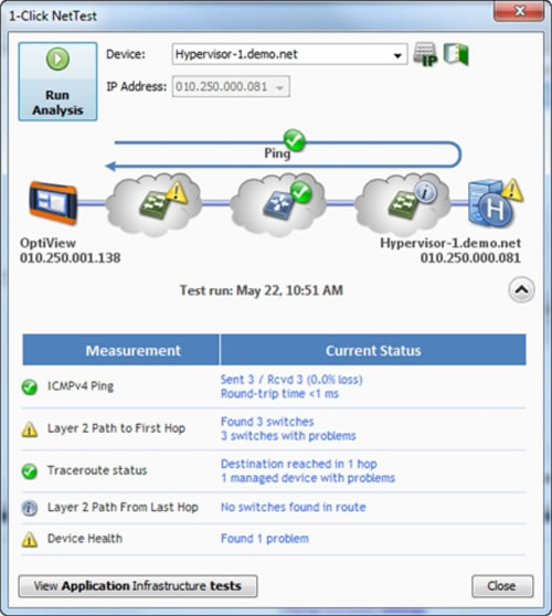 OptiView XG v8 具備兩種新的故障排除功能:一鍵 NetTest 和自動(dòng)多段分析,能夠迅速確定數(shù)據(jù)路徑以及隔離出物理和虛擬網(wǎng)絡(luò)中的問(wèn)題。只需按一下按鍵,一鍵 NetTest 就能找出單個(gè)屏幕視圖里的連接路徑。