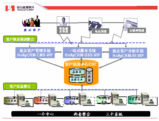 ·三個系統(tǒng):即重點(diǎn)客戶管理子系統(tǒng)(HollyCRM-CMS-VIP);重點(diǎn)客戶分析子系統(tǒng)(HollyCRM-BI-VIP);一站式服務(wù)子系統(tǒng)(HollyCRM-OSS-VIP)。