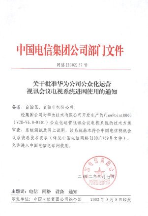 日前,在中國(guó)電信集團(tuán)公司組織的“新視通”公眾化視訊運(yùn)營(yíng)許可證的測(cè)試中,華為公司具有完全自主知識(shí)產(chǎn)權(quán)的“視點(diǎn)通”ViewPoint 8000綜合視訊系統(tǒng)以其先進(jìn)的設(shè)計(jì)理念和卓越的產(chǎn)品性能,順利通過(guò)測(cè)試,成為業(yè)界第一個(gè)獲得中國(guó)電信集團(tuán)公司公眾視訊運(yùn)營(yíng)許可證的產(chǎn)品。同時(shí)華為公司也成為目前業(yè)界唯一獲此認(rèn)證的設(shè)備供應(yīng)商。