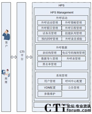 HPS 是基于華為呼叫中心平臺(tái)開(kāi)發(fā)的B/S 結(jié)構(gòu)的外呼業(yè)務(wù)配置管理系統(tǒng)。HPS 由HPS Management 和HPS Agent 兩部分組成。HPS