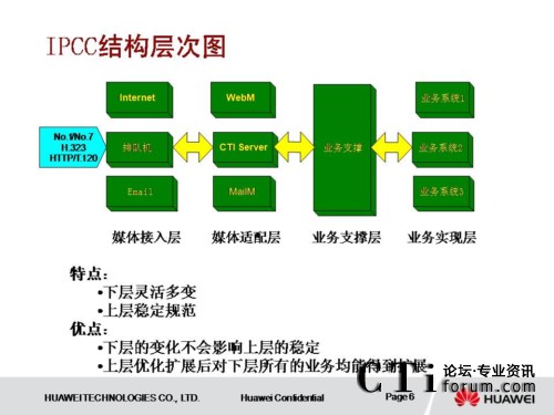 IPCC系統(tǒng)采用了獨立于各種接入媒體的設(shè)計結(jié)構(gòu),具有良好的開放性和可擴展性。系統(tǒng)采用業(yè)務(wù)和交換分離的設(shè)計思想,業(yè)務(wù)層及業(yè)務(wù)支撐層從傳統(tǒng)的網(wǎng)絡(luò)中分離出來,使業(yè)務(wù)實現(xiàn)層也具有良好的開放性和可擴展性。