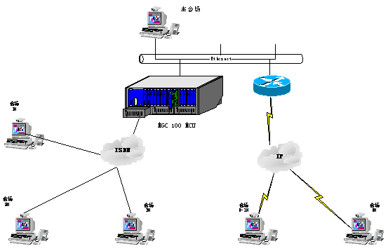 MCU(Multimedia Collaboration Unit)--多媒體資訊交流單元,一個能為多個終端用戶提供電視會議以及帶視象、話音和數(shù)據(jù)的多媒體資訊交流的實時網(wǎng)絡(luò)產(chǎn)品。