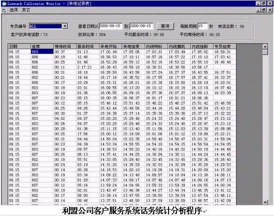 隨著利盟公司客戶服務(wù)系統(tǒng)的開通,使傳統(tǒng)的電話服務(wù)提高到了一個新的階段;一方面借助客戶服務(wù)系統(tǒng)提供的統(tǒng)計分析功能,使客戶服務(wù)中心的績效考核更加準確、高效和科學(xué);另一方面通過應(yīng)用先進的信息技術(shù)和產(chǎn)品,可以極大地提高客戶服務(wù)的質(zhì)量、效率和滿意度,從而對提升公司形象,促進產(chǎn)品銷售發(fā)揮積極的作用。
