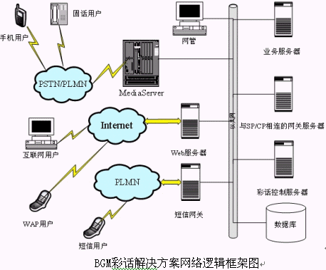 針對(duì)市場(chǎng)對(duì)彩話的需求,林克海德公司推出了林克海德彩話解決方案(BGM, Background Music Service)。BGM彩話解決方案是在獲得市場(chǎng)成功的LMS業(yè)務(wù)支撐平臺(tái)(Linkhead Media Server)的基礎(chǔ)上面向彩話具體應(yīng)用進(jìn)一步深入研發(fā)而完成的。林克海德公司自主開發(fā)的LMS業(yè)務(wù)支撐平臺(tái)是一個(gè)很有前瞻性的和先進(jìn)性的平臺(tái),是一個(gè)跨網(wǎng)絡(luò)平臺(tái)的業(yè)務(wù)系統(tǒng),同時(shí)支持傳統(tǒng)的TDM網(wǎng)絡(luò)、過渡網(wǎng)、下一帶網(wǎng)絡(luò)(NGN)、3G網(wǎng)絡(luò),可以為廣大增值業(yè)務(wù)運(yùn)營商構(gòu)造同時(shí)支持TDM網(wǎng)絡(luò)和IP電信網(wǎng)的業(yè)務(wù)系統(tǒng),這點(diǎn)可以從兩個(gè)方面來體現(xiàn),一方面LMS業(yè)務(wù)平臺(tái)能夠充分利用運(yùn)營商已有的網(wǎng)絡(luò)和用戶資源開展電信增值業(yè)務(wù),以最小的投資為用戶展現(xiàn)更加豐富和個(gè)性化的NGN和3G的業(yè)務(wù);另一方面LMS業(yè)務(wù)系統(tǒng)為下一代網(wǎng)絡(luò)和3G探索成功的業(yè)務(wù)和贏利模式,實(shí)現(xiàn)業(yè)務(wù)的平滑過渡。