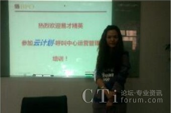 2012年3月16日作為“云計(jì)劃”第一期培訓(xùn)班在北京正式啟動(dòng),獲得了就職于各呼叫中心項(xiàng)目的易才博普奧一線坐席員工的廣泛關(guān)注和踴躍的報(bào)名。經(jīng)過“云計(jì)劃”入門培訓(xùn)資格的嚴(yán)格篩選,最終共有來(lái)自藝龍、樂淘、用友等項(xiàng)目的9名優(yōu)秀員工正式入圍,成為第一期“云計(jì)劃”成員。在今后的一段時(shí)間里同易才博普奧資深培訓(xùn)師一起學(xué)習(xí)一些列的專業(yè)課程,豐富自身在呼叫中心行業(yè)的專業(yè)知識(shí),并走上易才博普奧構(gòu)建的職業(yè)晉升通道!