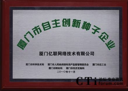 根據(jù)國(guó)家科技部、國(guó)務(wù)院國(guó)資委和全國(guó)總工會(huì)三部委制定的“創(chuàng)新型企業(yè)試點(diǎn)工作實(shí)施方案”和廈門(mén)市“技術(shù)創(chuàng)新引導(dǎo)工程實(shí)施方案”具體要求,市科技局、市國(guó)資委、市總工會(huì)、市財(cái)政局、市經(jīng)發(fā)局聯(lián)合開(kāi)展了2010年廈門(mén)市自主創(chuàng)新示范、試點(diǎn)、種子企業(yè)評(píng)選工作。經(jīng)專(zhuān)家評(píng)審和市五部門(mén)聯(lián)合審核后,廈門(mén)億聯(lián)網(wǎng)絡(luò)技術(shù)有限公司(以下簡(jiǎn)稱億聯(lián))憑借科技、環(huán)保的產(chǎn)品和強(qiáng)大的研發(fā)實(shí)力獲得了廈門(mén)市自主創(chuàng)新種子企業(yè)獎(jiǎng)。