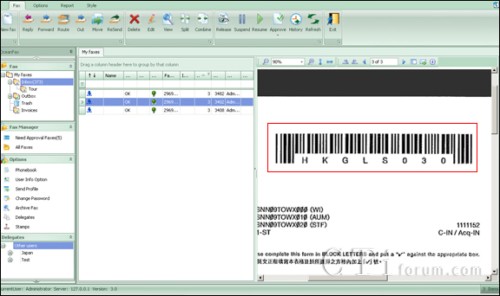 OceanFax V3.0’s new functions mainly include Auto Reply, Barcode Recognition & Auto Distribution, Approval & Stamp, Data Security, Image Plus Patent Technology, Self-defined Chinese and Image Header & Footer, Time Stamp, Built-in Fax Viewer/Editor, Fax Preview, and etc. All the new features are designed delicately, aiming to better meet clients’ new requirements.