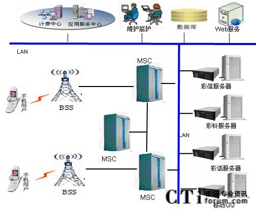 下圖是研祥智能科技股份有限公司采用CompactPCI計(jì)算機(jī)硬件平臺(tái)提供的電信增值業(yè)務(wù)解決方案從方框圖:電信用戶通過(guò)交換中心(MSC)向各個(gè)服務(wù)器(彩信、彩鈴、彩話、移動(dòng)QQ)提取信息,服務(wù)器由研祥CPCI產(chǎn)品構(gòu)成。主控業(yè)務(wù)邏輯運(yùn)行的功能實(shí)體,管理和控制平臺(tái)業(yè)務(wù)的運(yùn)行、對(duì)業(yè)務(wù)腳本進(jìn)行管理并對(duì)業(yè)務(wù)進(jìn)行監(jiān)控和統(tǒng)計(jì),同時(shí)計(jì)費(fèi)中心向用戶計(jì)費(fèi)。
