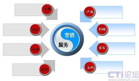 首先看一下服務(wù)營銷的理念,有必要來溫故一下。在傳統(tǒng)的制造業(yè)中,即在工業(yè)經(jīng)濟的模式下,服務(wù)和營銷是截然分割的,一般大家都認(rèn)為,營銷在前,服務(wù)在后。服務(wù)有幾大特性,比如在購買了產(chǎn)品后才會有相關(guān)的服務(wù),服務(wù)是無形的商品,企業(yè)建立的是售后服務(wù)體系。另外,大家都認(rèn)為服務(wù)沒有辦法進行標(biāo)準(zhǔn)化,從這個角度說,大家一看到服務(wù),就會聯(lián)想:客服、成本、務(wù)虛、被動等詞匯。服務(wù)體現(xiàn)的是一種理念,所以大家認(rèn)為比較虛。說到服務(wù)是被動的,實際是與營銷相比,營銷是比較主動的。拿呼叫中心來說,客服人員坐在座位上,等待著客戶打來電話,而不能對電話進行預(yù)測,下一個小時會有多少呼入電話產(chǎn)生、投訴的內(nèi)容會有哪些、咨詢業(yè)務(wù)量會有多大,這些誰也不能進行準(zhǔn)確預(yù)測,所以說服務(wù)相對比較的被動。再說營銷,大家談營銷時,能想到的詞匯有:產(chǎn)品、利潤、務(wù)實、主動。因為營銷是與產(chǎn)品掛鉤,營銷又可以賺取利潤。另外,之所以說營銷是務(wù)實的,因為營銷是有指標(biāo)的,每個月要進行考核。同樣如果從呼叫中心的角度談電銷,它是一種主動式的外呼。