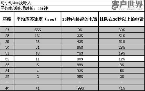 1. 在這種情況下,雖然平均應(yīng)答速度已經(jīng)達(dá)到了11秒,還是有12%的來電要等30秒以上才能得到應(yīng)答。