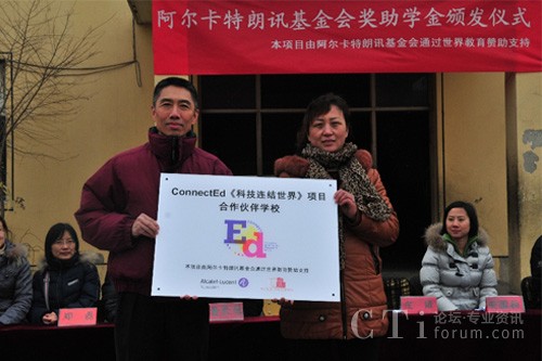 CTI論壇(ctiforum)3月6日消息(記者 浩宇):近日,法國阿爾卡特朗訊基金會(Alcatel-Lucent Foundation)與美國非營利組織世界教育(World Education)在北京市大興區(qū)農(nóng)民工子弟學!埡W校聯(lián)合舉辦公益助學活動,來自阿爾卡特朗訊中國旗艦企業(yè)——上海貝爾及世界教育的志愿者為45名貧困生、72名成績優(yōu)秀學生、244名成績進步獎獲得者共計361人發(fā)放獎助學金和獎狀。此次活動是ConnectEd“科技連結(jié)世界”項目協(xié)助流動青少年“透過科技擁抱世界”系列公益活動的重要一站,ConnectEd “科技連結(jié)世界”項目由阿爾卡特朗訊基金會(Alcatel-Lucent Foundation)與世界教育(World Education)共同在全球推動。作為志愿者之一,上海貝爾執(zhí)行副總裁、阿爾卡特朗訊中國區(qū)產(chǎn)品與研發(fā)負責人莊靖博士參與了此次活動,并為阿爾卡特朗訊ConnectEd項目合作校揭牌。雙方還在北京市昌平區(qū)新源學校舉行了公益助學活動,為45名貧困生、39名成績優(yōu)秀學生、52名成績進步獎獲得者共計136人發(fā)放獎助學金。