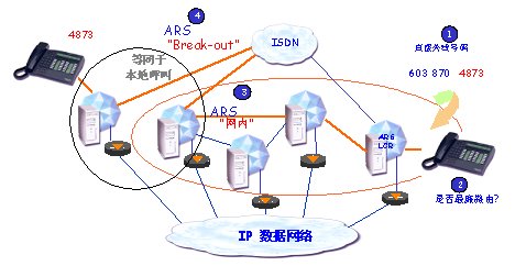 如果,一個(gè)網(wǎng)絡(luò)用戶(hù)想與一個(gè)外線(xiàn)用戶(hù)通話(huà)。ARS應(yīng)用程序分析所撥號(hào)碼。根據(jù)不同的呼叫方向,選擇最廉費(fèi)用的運(yùn)營(yíng)商,而不管網(wǎng)絡(luò)內(nèi)的物理連接。地址信息將會(huì)被修改,從而符合該運(yùn)營(yíng)商的編號(hào)計(jì)劃(增加,刪除或轉(zhuǎn)換數(shù)字),并且被叫號(hào)碼和轉(zhuǎn)換后的號(hào)碼將會(huì)被存貯在呼叫詳細(xì)記錄(CDR)內(nèi)。