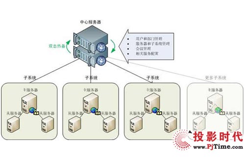 用戶、會(huì)議、服務(wù)器的管理工作都放在中心服務(wù)器來進(jìn)行,將會(huì)議功能和管理功能分離。用戶的登錄會(huì)議、管理系統(tǒng)只要訪問一個(gè)中心服務(wù)器即可,簡化了用戶操作,并降低系統(tǒng)風(fēng)險(xiǎn)。
