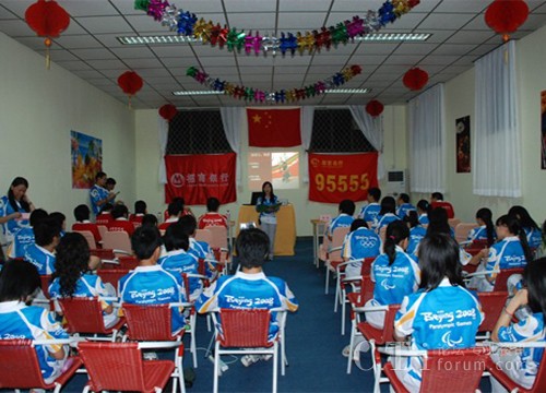 這場(chǎng)競(jìng)賽,我們很榮幸的邀請(qǐng)到了奧運(yùn)觀眾呼叫中心翟秦秘書長(zhǎng)、呂克勤服務(wù)總監(jiān)、藍(lán)益民團(tuán)隊(duì)建設(shè)總監(jiān)、劉忠華、楊軼副秘書長(zhǎng)、張廣剛經(jīng)理和泰康人壽的吳江老師擔(dān)任我們的評(píng)委。在一曲激情澎湃的《歌唱祖國(guó)》拉歌聲中,拉開了決賽序幕,在正式比賽開始之前,奧組委各領(lǐng)導(dǎo)和95555駐京志愿者團(tuán)隊(duì)一起觀賞了招行奧運(yùn)志愿者團(tuán)隊(duì)大事記的短片,短片匯集了大量同事幕后的心血,由全體志愿者活動(dòng)工作照片中挑選出來的照片串聯(lián)而成,短片回顧后,我們的決賽正式開始了!