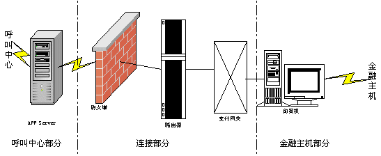 呼叫中心跟金融主機房的連接如下圖所示。