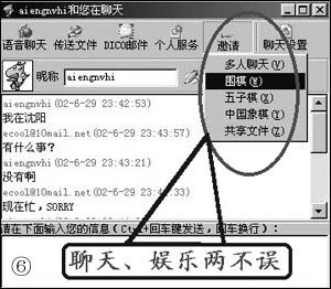 5、夢幻尋呼(DICO):郵件群發(fā)功能;豐富的插件使得我們可以聊天娛樂兩不誤(如圖6);方便清晰的語音聊天功能——能夠穿透防火墻,達到電話的音質(zhì)效果;個人Web服務(wù)——可以把你的個人電腦輕松設(shè)置成一個Internet