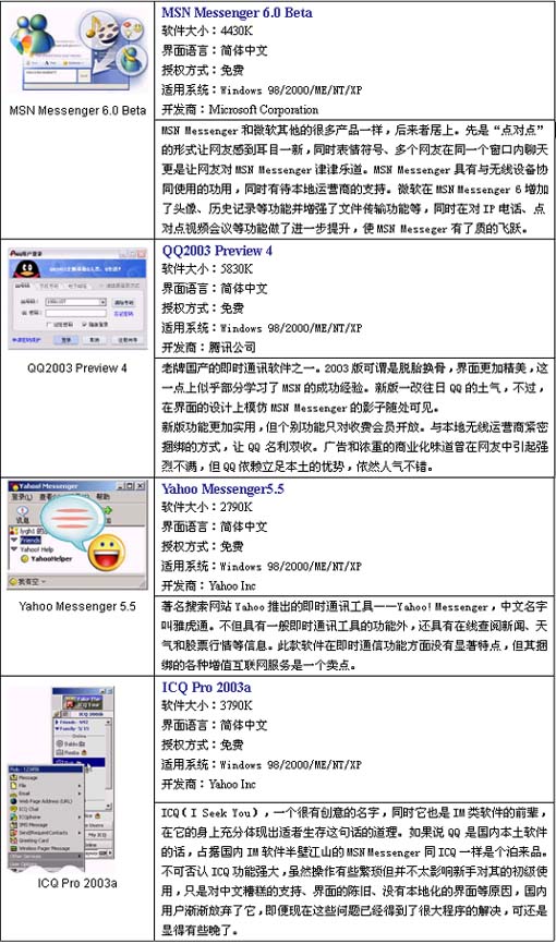 四款主流即時(shí)信息軟件2003年新版評(píng)測(cè)