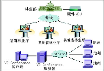 湖南省林業(yè)廳是省政府行業(yè)電子政務(wù)系統(tǒng)的示范單位,非常重視計算機網(wǎng)絡(luò)平臺上的各種軟件應(yīng)用。為了減少會議支出,提高辦公效率,湖南省林業(yè)廳經(jīng)過廳務(wù)會研究決定,希望充分利用全省十四個地州市現(xiàn)有的計算機和音響設(shè)備建立全廳的網(wǎng)絡(luò)視頻會議系統(tǒng)。在經(jīng)過公開競標(biāo)后,V2產(chǎn)品憑借著其優(yōu)越的性能價格比和售后服務(wù)保證,成功中標(biāo)。