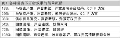 網(wǎng)絡(luò)環(huán)境差,可以選擇低帶寬產(chǎn)品,側(cè)重H.261、H.263、MPEG4的產(chǎn)品,尤其是H.263,在低帶寬下比其他算法效果好。如果用戶網(wǎng)絡(luò)帶寬非常窄,對視頻會議設(shè)備的投入預(yù)算也比較小,可以考慮桌面系統(tǒng)、軟件視頻等解決方案,采用QCIF格式開會,不失為一種經(jīng)濟實用的辦法。