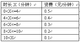 例2,區(qū)間話費(fèi)在時長不超過4分鐘的情況下,按0.5元/分鐘收;超過4分鐘但不超過6分鐘,其超過部分按0.4元/分鐘收;超過6分鐘但不超過8分鐘,其超過部分按0.3元/分鐘收。怀^8分鐘但不超過10分鐘,其超過部分按0.2元/分鐘收取;超過10分鐘,其超過部分按0.1元/分鐘收取。