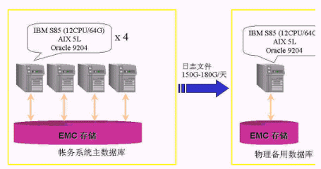 在這里簡單介紹一個某省移動公司帳務系統(tǒng)采用Oracle Data Guard物理備用數(shù)據(jù)庫的情況(見圖5)。