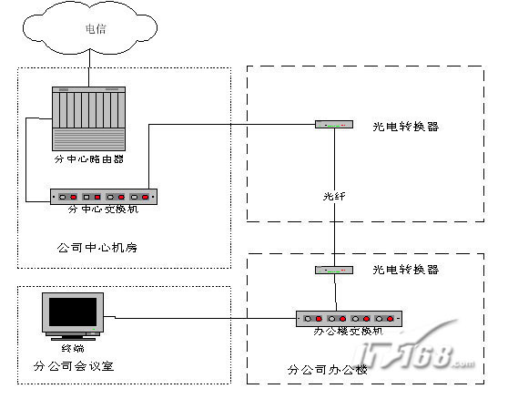 。。光纖接入也是一種方便的接入方案。在電信機(jī)房與用戶之間直接鋪設(shè)光纖或者租借第三方的光纖,在兩端增加一對光電轉(zhuǎn)換器,電信機(jī)房的光纖轉(zhuǎn)換器連接到中心交換機(jī)上,直接接入電信骨干網(wǎng),用戶端的光電轉(zhuǎn)換器連接到本地的局域網(wǎng)的交換機(jī)上,這樣可以實(shí)現(xiàn)本地的視頻會(huì)議終端的接入。