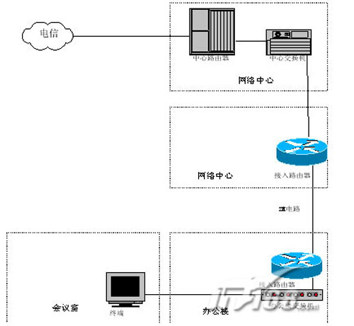 。2M電路接入是目前電信網(wǎng)絡(luò)常用的一種接入方式。主要是基于目前電信的網(wǎng)絡(luò)環(huán)境,原有的電路交換網(wǎng)絡(luò)十分豐富,大部分地區(qū)都有光纖接入,部分較差地區(qū)也有銅線接入,因此大部分地方可以提供2M電路的接入方式。這樣在兩端分別增加一個(gè)接入路由器,根據(jù)電路提供的接口(如E1、V.35等),選擇不同的端口,可以分別接入到各地的局域網(wǎng)內(nèi),實(shí)現(xiàn)視頻會(huì)議的接入。路由器類型可選性較多,此類路由器屬于低端邊緣路由器,如CISCO、BINTEC、華為等廠家均有相應(yīng)的產(chǎn)品系列。