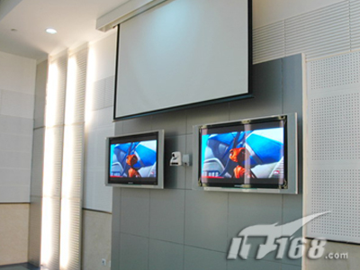 在副會(huì)場(chǎng)方面,和主會(huì)場(chǎng)區(qū)別不大,不過比主會(huì)場(chǎng)要光亮一點(diǎn),面積也小了很多,所以主顯示系統(tǒng)只需要SONY PX40正面投影(120寸)就可以搞定。VPL-PX40可以多種方式安裝,包括桌面正投,吊頂及背投。供選購(gòu)的兩款鏡頭擴(kuò)展了安裝的靈活性。中央控制開關(guān)功能讓用戶能通過中央電源開關(guān)直接開關(guān)投影機(jī)。VPL-PX40還配備了獨(dú)特的密碼認(rèn)證系統(tǒng),采用SONY液晶板的新型光學(xué)系統(tǒng),結(jié)合265W UHP燈泡,VPL-PX40/PX35的輸出亮度高達(dá)3500ANSI流明,能在較明亮的環(huán)境下提供出色的畫面質(zhì)量及對(duì)比度。