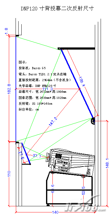 DNP120寸背投幕二次反射尺寸