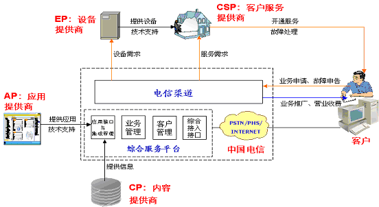 中國電信:綜合信息服務提供商,提供品牌、平臺、接入和渠道,負責業(yè)務的組織、運營、銷售和管理,并為客戶提供統(tǒng)一的服務界面。