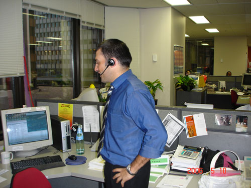 Colonial公司是一家大型的銀行業(yè)務(wù)呼叫中心,座落在悉尼市區(qū)最熱鬧的喬治大街附近,相當(dāng)于我們的上;春B贰_@里的幾百個(gè)座席分布在寫字樓的好幾個(gè)樓面,所有座席都是使用大北歐的無(wú)線耳嘜-GN9120。筆者記得上月去東京參觀HONDA的呼叫中心,那里只有不到三十個(gè)一線的座席代表使用無(wú)線耳嘜,這里則是所有人都配備了這種先進(jìn)的無(wú)線設(shè)備。筆者看到不少員工站著工作,還有少數(shù)走動(dòng)辦公,員工在座位上可以輕松轉(zhuǎn)身,隨時(shí)調(diào)整姿勢(shì),讓身體處于松弛狀態(tài),這種輕松自如想必電話線那頭的客戶也感同身受。呼叫中心的經(jīng)理Venessa告訴筆者,這里的服務(wù)內(nèi)容比較豐富,對(duì)員工的業(yè)務(wù)能力要求很高,所以他們?yōu)閱T工提供一流的工作環(huán)境以減少人員流失率,降低招聘和培訓(xùn)成本,提高客戶滿意度。
