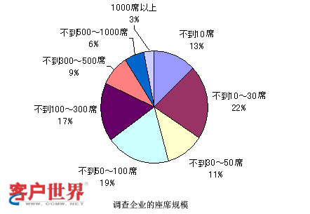 那么和剛才雜志社調(diào)查的結(jié)果是一樣的。這個(gè)數(shù)字又是政府方面調(diào)查的結(jié)果,他們調(diào)查的很細(xì),對(duì)很小規(guī)模的,比如說(shuō)1-4人的呼叫中心都進(jìn)行了調(diào)查,并且看到這種小規(guī)模的呼叫中心還占有很大的比例?梢钥吹剑10人以下的呼叫中心可能在這個(gè)結(jié)果里面占了基本上高于50%,所以可能得到一個(gè)結(jié)論,就是在日本小型的呼叫中心非常多。